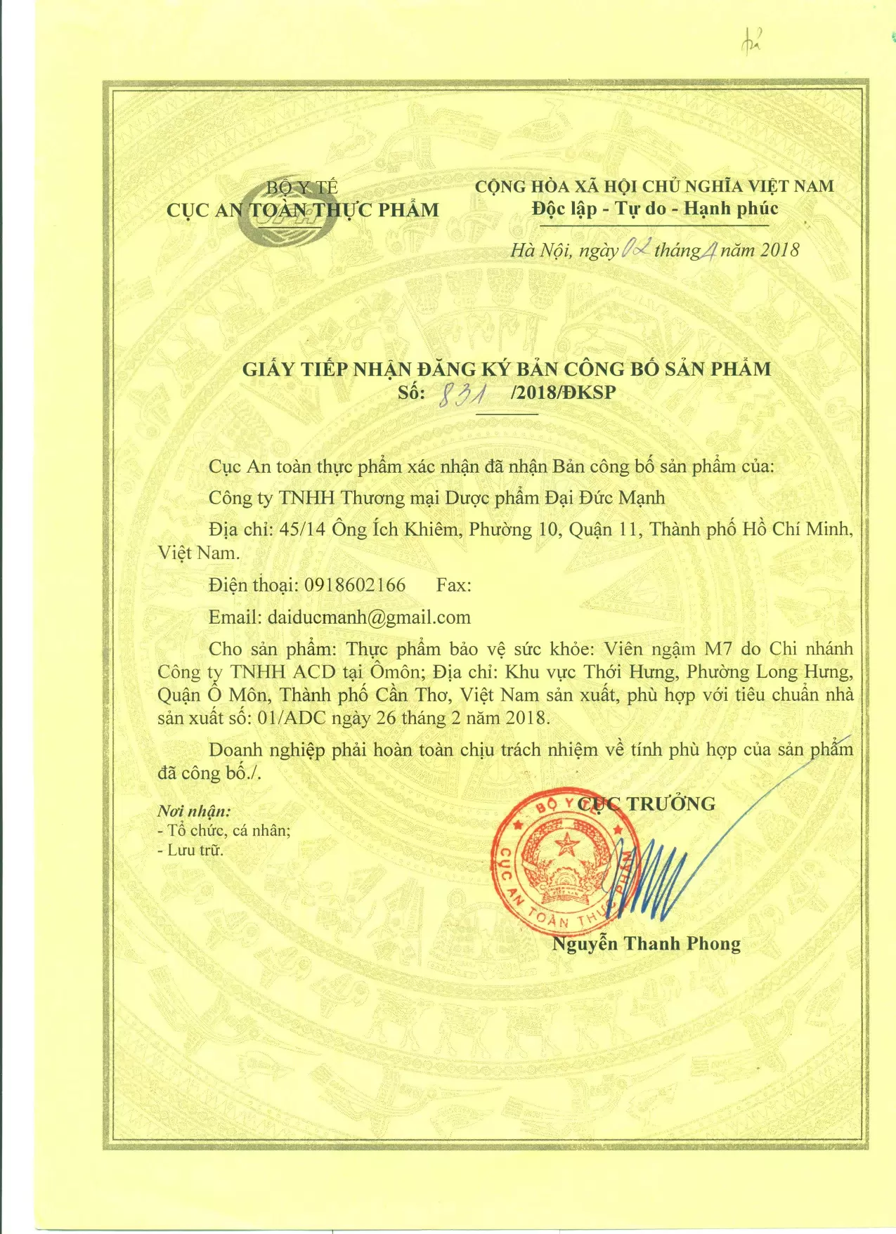 Lưu ý: Trong thời gian sử dụng không uống nước đá, không hút thuốc, không uống rượu bia, không ăn thức ăn cay nóng